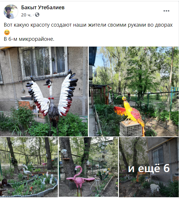 "Вот какую красоту создают наши жители своими руками во дворах. В 6-м микрорайоне", — поделилась фотографиями Бакыт Утебалиева.