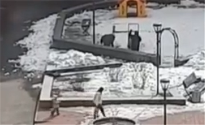 Мальчик на экскаваторе выкопал яму на тротуаре в Шымкенте