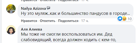 "Это больше для декора стоит, никогда не видел, чтобы кто-нибудь пользовался. К сожалению ", "Это муляж… как и большинство пандусов в городе", "Мы тоже не смогли им воспользоваться со слабовидящим дедушкой", — жалуются комментаторы.