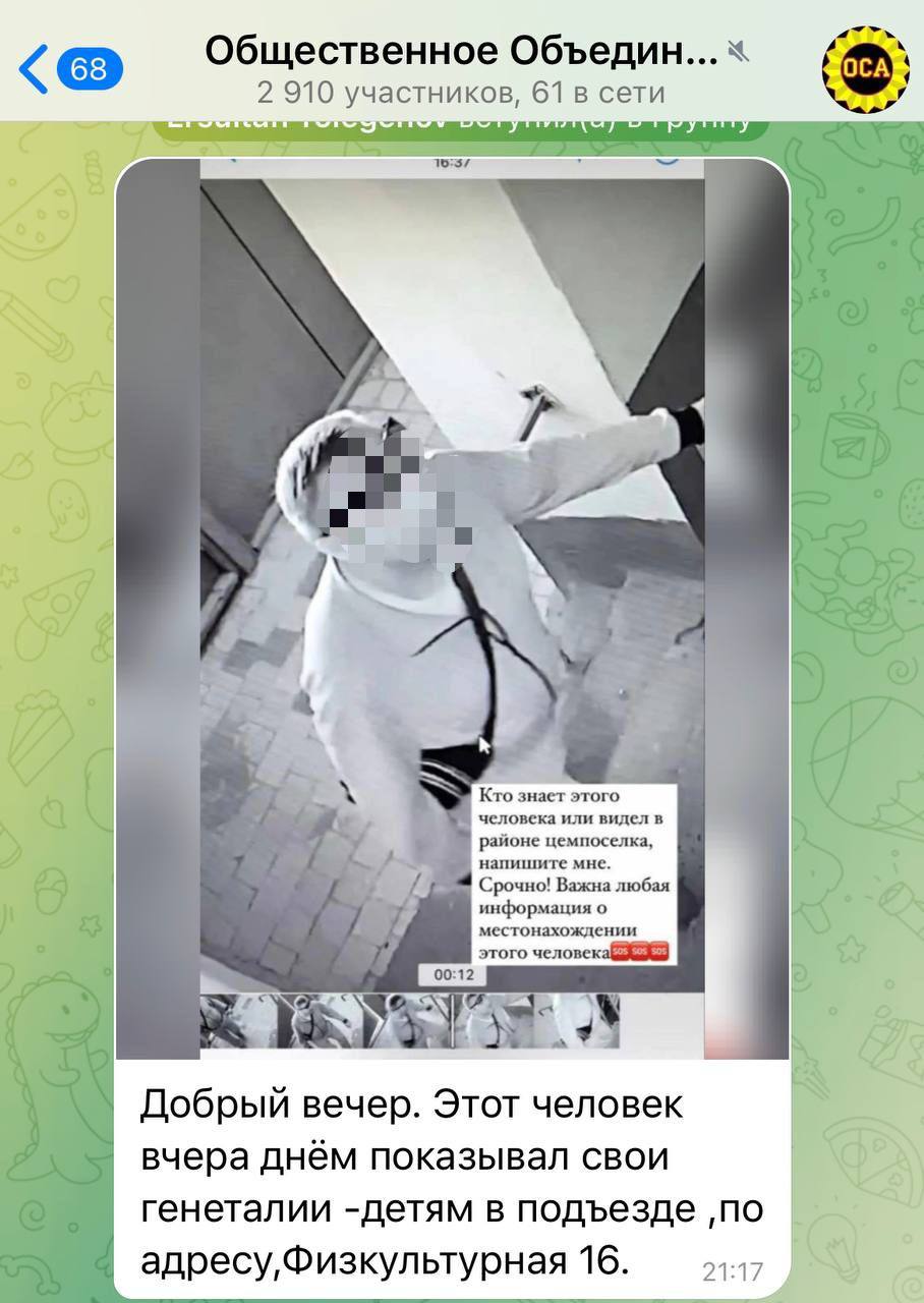 Его действия записали видеокамеры, установленные в подъезде, сообщает Caravan.kz со ссылкой на Polisia.kz. Ауэзовским отделением полиции начато досудебное расследование.