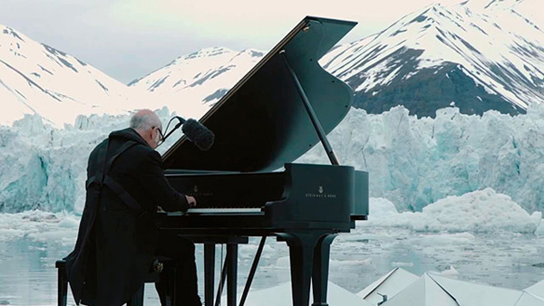Пианист также выступал на льдине в открытом океане, призывая прекратить добычу нефти и рыбы в Арктике.