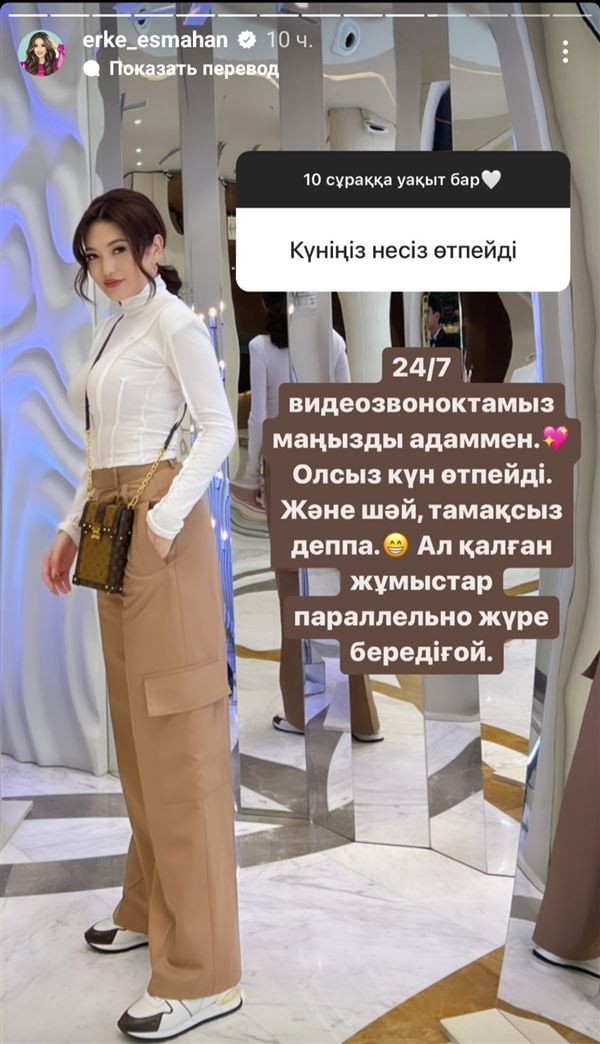 "Мы 24/7 на видеосвязи с важным для меня человеком. Без этого ни дня не проходит. Еще могу чай и еду назвать. А остальная работа параллельно идет", — ответила Ерке.