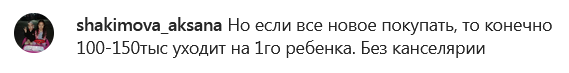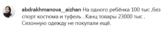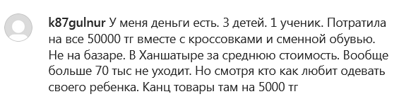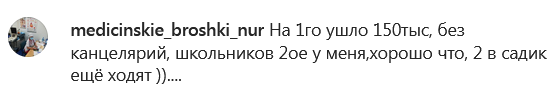 В комментариях к записи своими тратами поделились и другие казахстанцы. Минимальная сумма сборов на одного школьника составляет 70-80 тысяч тенге, но многие родители уточняют, что это без учета канцелярии, обуви и сезонной верхней одежды.