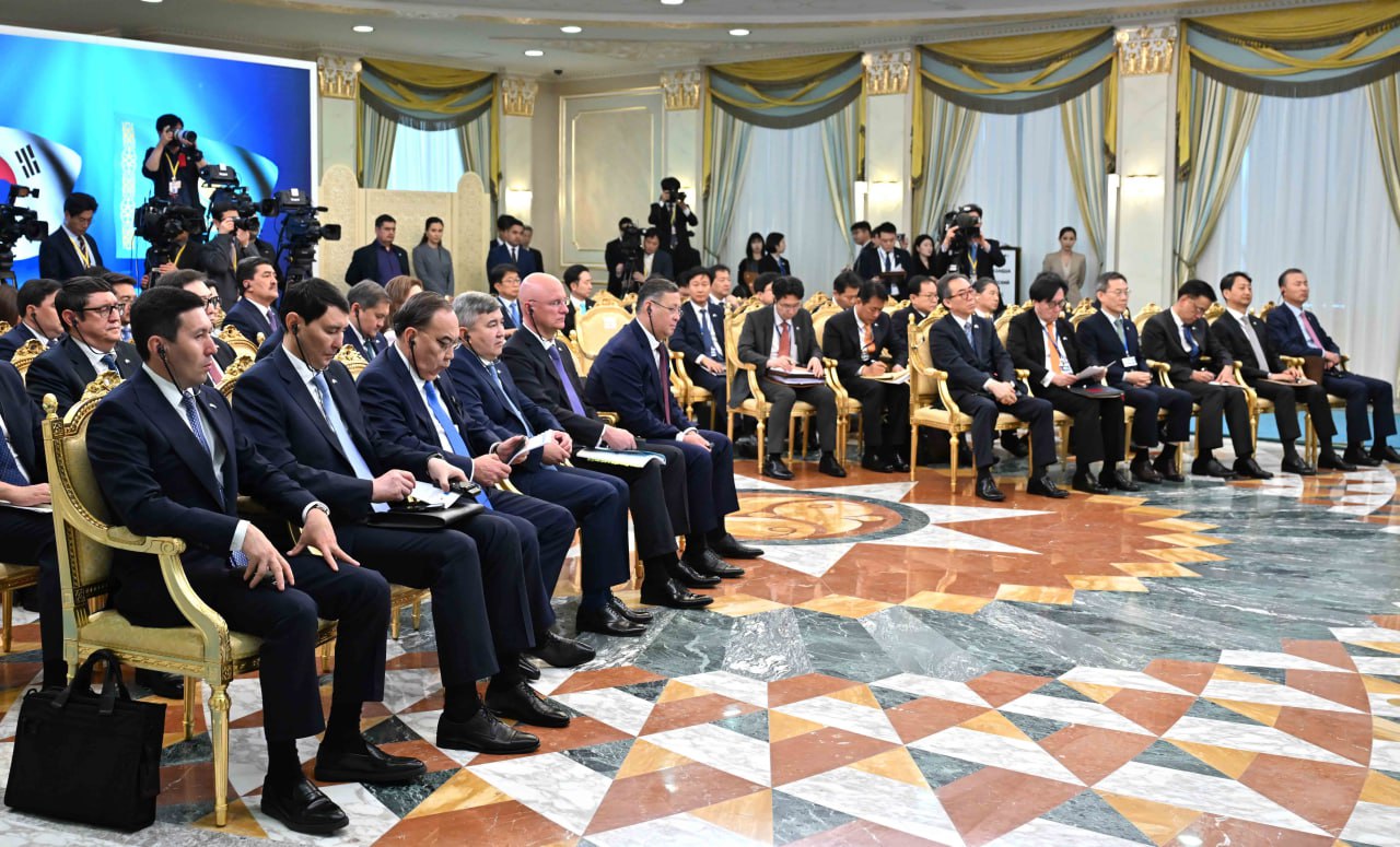 "За период до прошлого года объем инвестиций из этой страны достиг 9,6 млрд долларов. Обе стороны высказали заинтересованность в увеличении данного показателя. В Казахстане функционируют более 700 компаний с корейским капиталом. В их числе можно назвать такие крупные корпорации, как Samsung, Hyundai, Kia, Lotte, Doosan, Posco, которые успешно работают в нашей стране. Мы с президентом Юн Сок Ёлем договорились укрепить наше всестороннее сотрудничество, прежде всего по таким направлениям, как развитие инфраструктуры и производства, финансы, энергетика, экология, автомобильная и аэрокосмическая промышленность, IT, цифровизация. В настоящее время компания Doosan Enerbility строит в Туркестане электростанцию на базе парогазовой установки. Samsung Electronics планирует начать производство бытовой техники в нашей стране. Мы полностью поддерживаем данную инициативу. Компания GL Ralpha намерена построить биофармацевтический завод в Астане", – сказал президент.