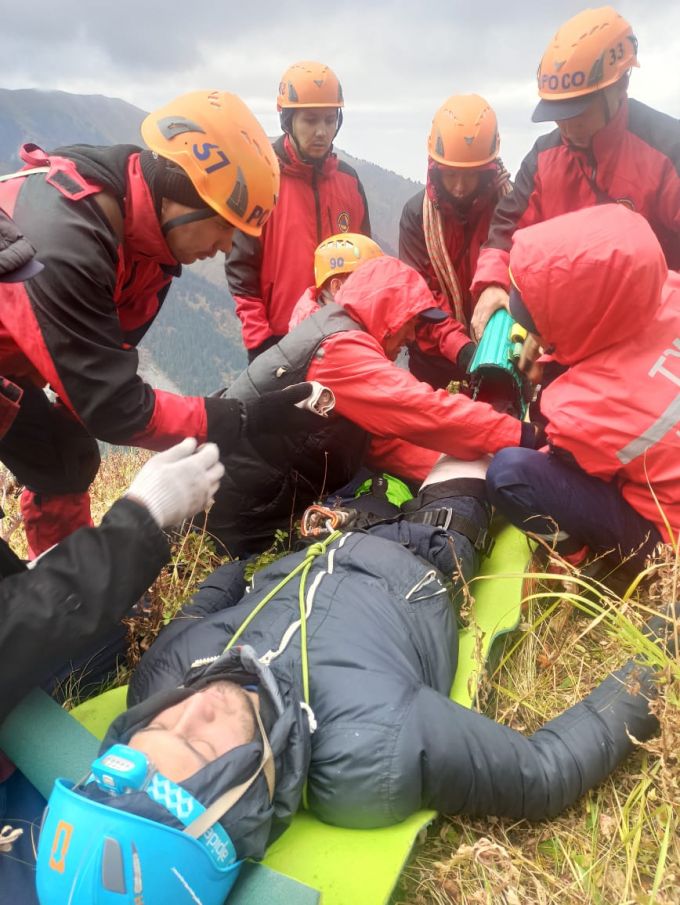 Спасатели Республиканского оперативно-спасательного отряда эвакуировали пострадавшего туриста с маршрута на Большой Алматинский пик.
