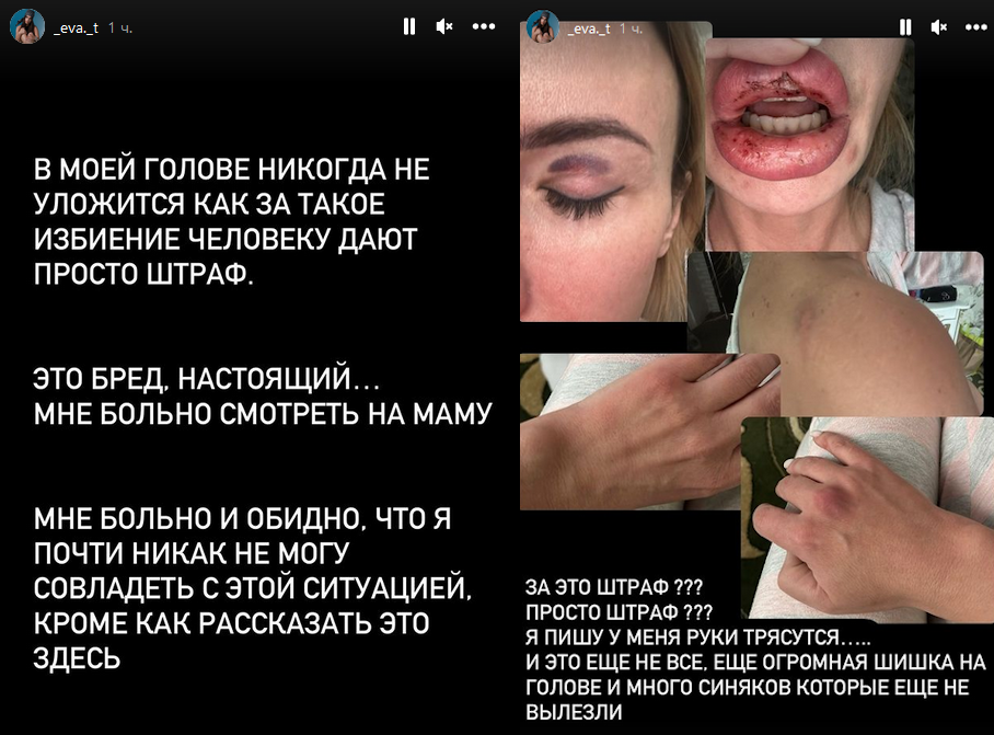 Каким штрафом? Моя мама сидит вся в крови и синяках, а вы ржете. Как такие должности могут занимать такие люди, у меня нет слов. Как вообще работают наши правоохранительные органы?" — написала она.