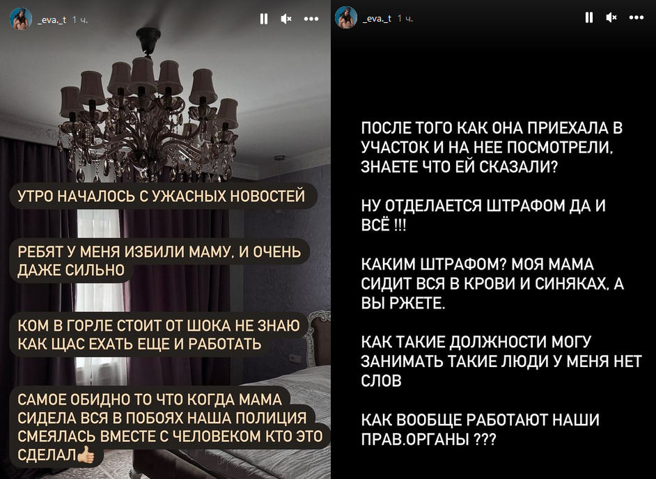 "Утро началось с ужасных новостей. У меня сильно избили маму, и очень даже сильно. Ком в горле стоит от шока, не знаю, как сейчас ехать, еще и работать.
