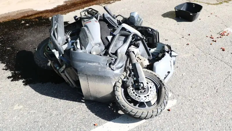 Водитель автомобиля не успел среагировать и столкнулся со скутером, после чего еще и наехал на скутериста.