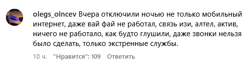 "Вчера интернет отключили в два часа ночи. Сегодня — в час. В чем дело? За что мы платим деньги? Почему мобильный интернет отключают без всяких предупреждений вторую ночь?" — написал недовольный блогер, приложив скриншот, на котором видно отсутствие индикатора связи.