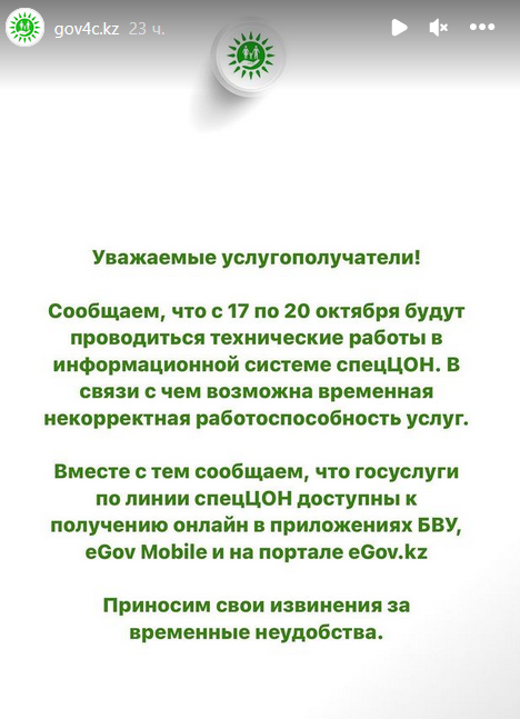 "В соцсетях сообщают о сбое в работе информационной системы, из-за чего в спецЦОНах не оказываются услуги. По некоторым данным, проблема наблюдается по всей стране. По традиции, МЦРИАП и Правительство для граждан до последнего играют в молчанку", — написано в одном из казахстанских Telegram-каналов.