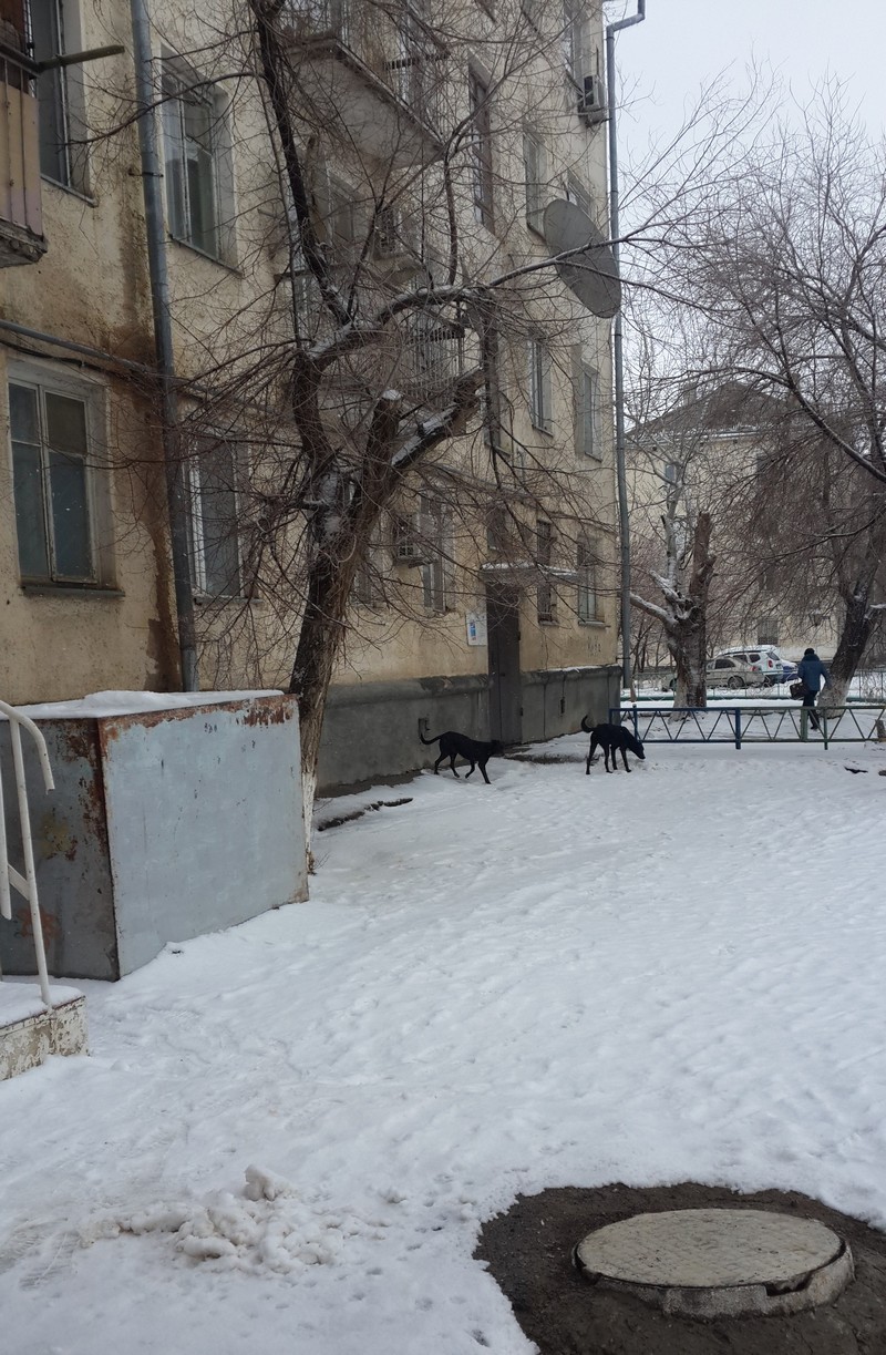 «Внимание, владельцы, чьи домашние кошки гуляют на улице. Если увидите вот этих двух чёрных собак, не отпускайте своих питомцев. Эти шакалы съели всех кошек по ул. Абая, дом 2. Сегодня мы наконец поняли, как они попадают в подвал и гоняют кошек даже там. Судя по тому, как они облизывались, у них там схрон еды. Я очень хочу сходить туда и найти хотя бы клочок шерсти от нашего Рыжика. Если кто-нибудь видел, как они задрали рыжего кота, напишите, пожалуйста. Во дворе исчезло уже где-то пять котов».