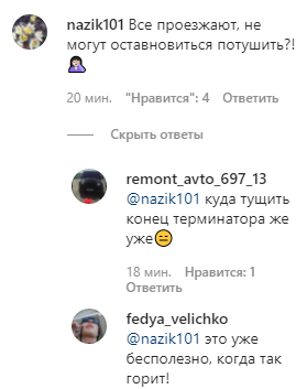 Многих людей в комментариях заинтересовало, почему никто машину не тушит: