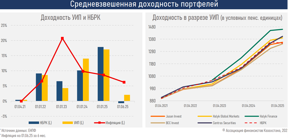 В целом с момента внедрения возможности частного управления практически все частные управляющие компании опережают Нацбанк в росте условной единицы стоимости пенсионных активов, что подчёркивает важность наличия выбора и конкуренции в управлении пенсионными активами в интересах вкладчиков.