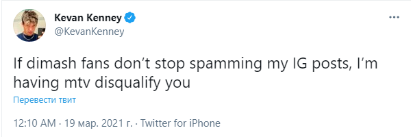 "Если фанаты Димаша не прекратят спамить мне в личные сообщения, то телеканал MTV дисквалифицирует его".