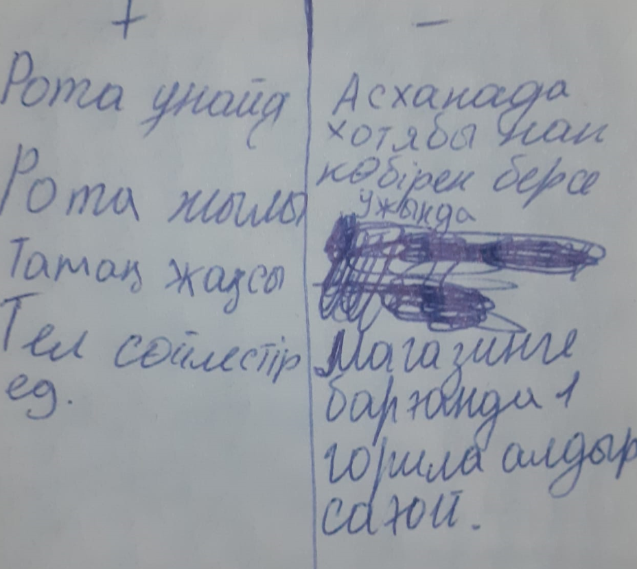 — Мы провели опрос среди военнослужащих трех воинских частей Национальной гвардии, расположенных в Актау, Атырау, Жанаозене, составив свою таблицу по качеству солдатского питания, — говорит представитель Комитета солдатских матерей Олеся Старых. – Военнослужащие батальона особого назначения в/ч 6656 в анкетах указали, что у них на столах бывает так, что «нет масла, а рыбу на ужин дают либо недожаренную, либо вообще с червями. Сок томатный так разбавлен водой, что вкуса у него нет совсем». Солдаты отказываются его употреблять, а яблочного сока не хватает. Говорят, что хлеб «кислый и сухой, творог прокисший, посуда грязная». Военнослужащие роты материально-технического обеспечения пожаловались, что в солдатской столовой «нет места для мытья рук, а на столах отсутствуют специи».