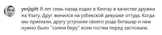 "Сам лично утверждать не могу, была ли такая традиция или нет. Возможно, какой то «пранк» или конкурс тойский.