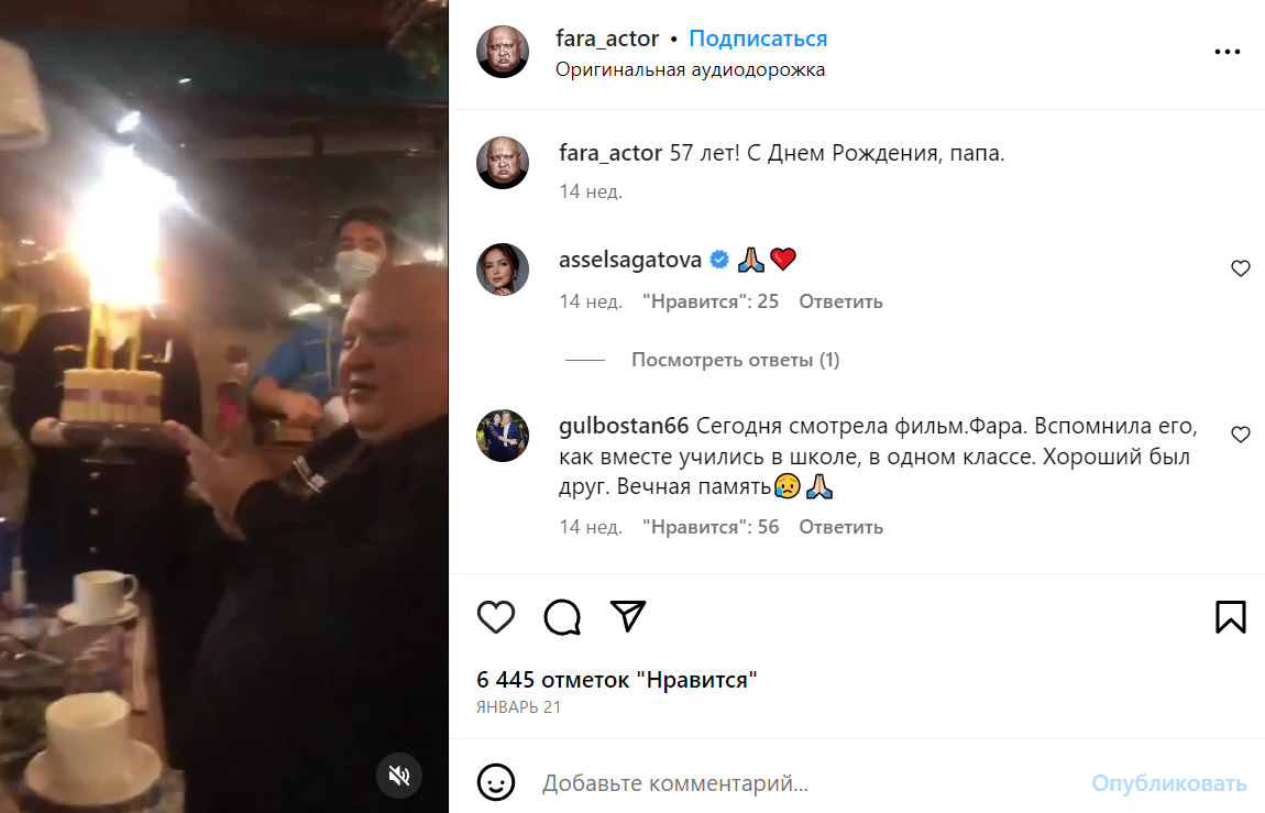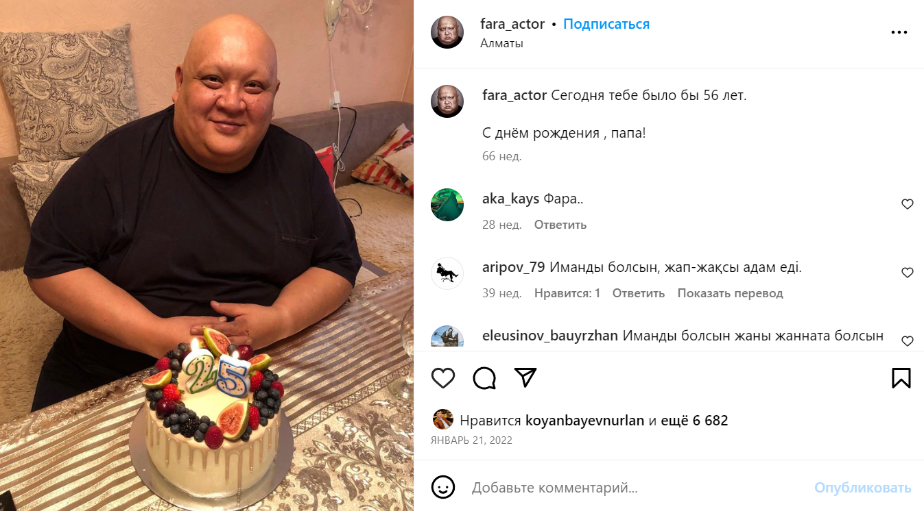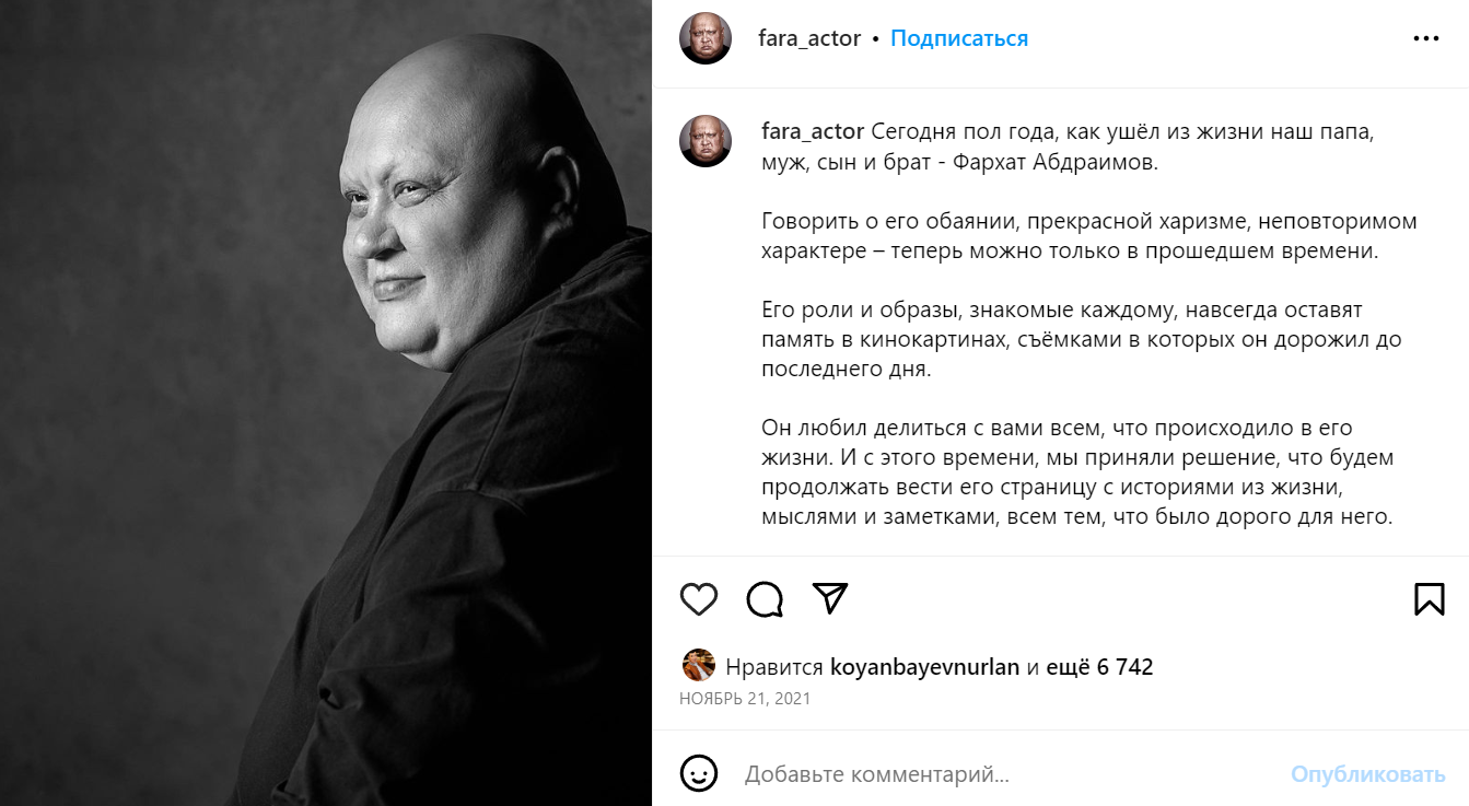 В 2021 году казахстанский кинематограф и общественность потрясла новость о смерти известного актера Фархата Абдраимова, более известного как Фара.