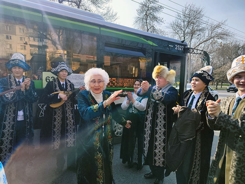Причём в самом правильном формате: в национальной одежде, с домброй и, конечно, баурсаками. Ребята решили занести праздник туда, где его точно не ждали — в общественный транспорт.
