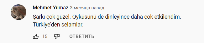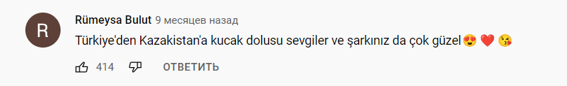 Как интересно, под песнями Ерке Есмахан практически все комментарии восхищенные и из Турции. "Мне очень нравится эта музыка. Передаю привет родным казахам" — комментарий от слушателя из Турции.