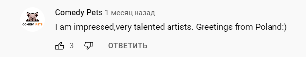 "Я впечатлен, очень талантливые артисты. Привет из Польши".