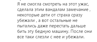 По словам автора публикации, "дети залезли в машину, а потом начали долбить ногами лобовое стекло".