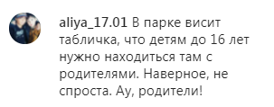 "В парке висит табличка, что детям до 16 лет нужно находиться там с родителями ", "Согласна с автором", "Этот парк — дань погибшим пожарным. Ничего не ценно в этом мире. К сожалению…" — пишут в комментариях к публикации.