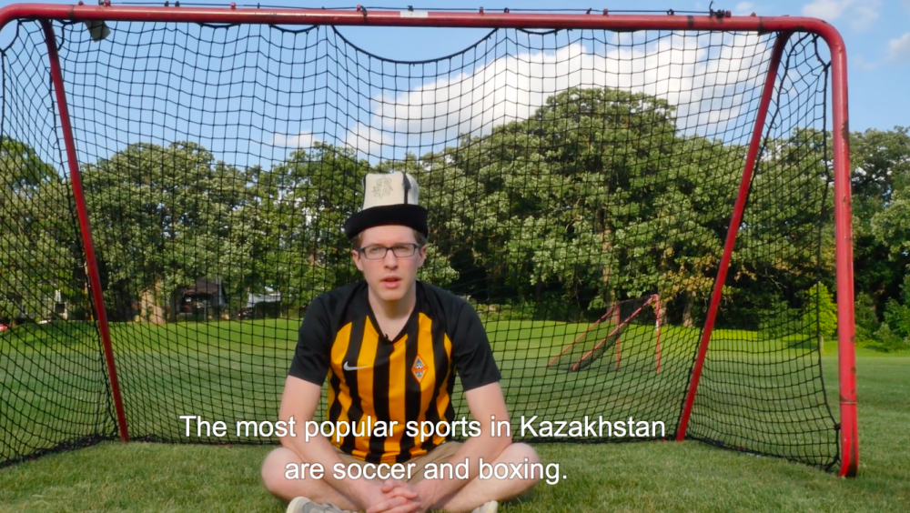 "Привет, друзья, меня зовут Жакып. Учусь в магистратуре в университете Висконсина. Я расскажу вам о казахстанском спорте", — произнес на чистом казахском Джейкоб.