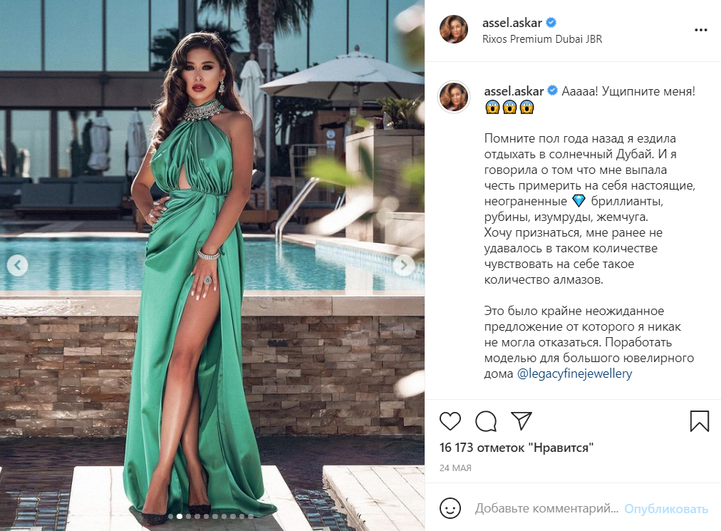 Однако беременная Асель Аскар не впала в депрессию после очередного развода, как можно было бы подумать. В начале июня девушка заявила, что собирается купить жильё на Кипре за 100 тысяч долларов.
