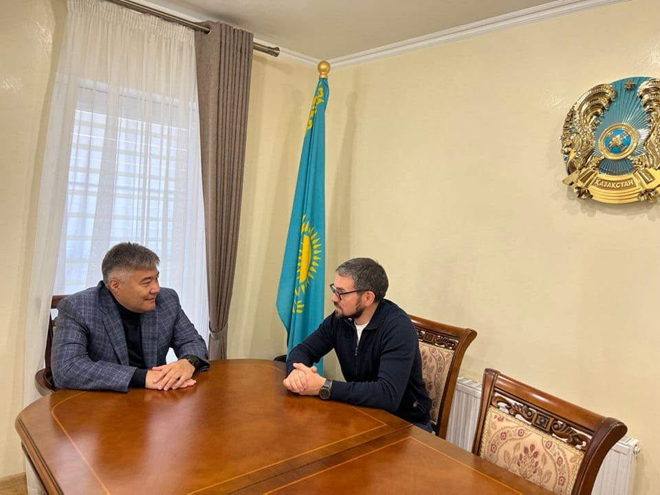 Вторая встреча прошла с руководителем казахской диаспоры в Украине Данияром Егембердиевым. Он рассказал Дархану Калетаеву о повседневной жизни казахов в Украине и отметил, что они активно обсуждают и поддерживают политические процессы, происходящие в Казахстане. Дархан Калетаев подчеркнул, что посольство окажет необходимую помощь представителям казахской диаспоры в связи со сложившейся ситуацией в Украине.