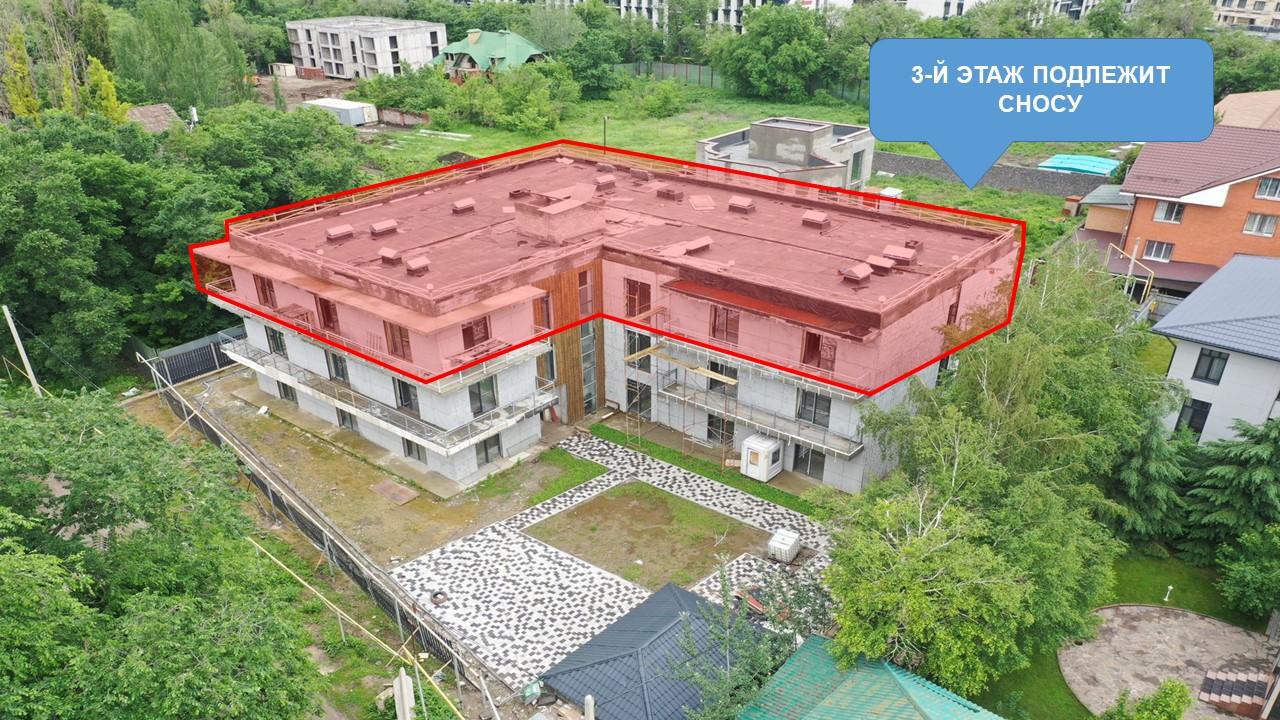 В результате в отношении собственника приняты административные меры по ст.316ч.1, 462ч.3 КоАП РК. По итогам судебных разбирательств по иску управления 15 июня 2022 г. Алматинским городским судом вынесено решение о сносе 3-го этажа.