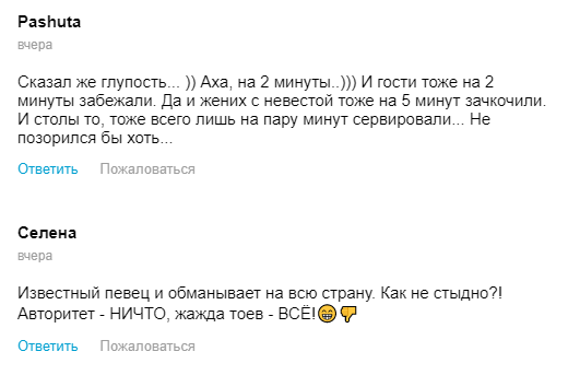 Сам певец также прокомментировал этот инцидент. Он заявил, что не является хозяином и заказчиком торжества. Омаров сообщил, что "буквально на две минуты заскочил" в кафе, где проходил той. Также певец добавил, что некоторые воспользовались этим и заявили, что это праздник самого артиста. Юристы артиста занимаются этим по факту "распространения ложной информации".