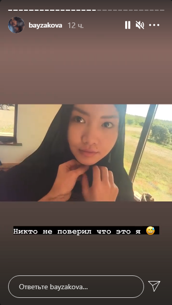 Скандально известная Айжан Байзакова показалась в сториз в Instagram в чёрном хиджабе, передаёт медиа-портал Сaravan.kz.