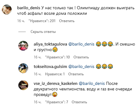 И у дома Елдоса ждал особенный сюрприз, который раньше, кажется, не получал ни один олимпийский чемпион. По крайней мере, информации об этом в открытых источниках нет. Неизвестные благодетели полностью оплатили новый асфальт, которым местные власти облагородили улицы у дома, в котором живет Елдос. По крайней мере, в акимате сообщили, что полотно было обновлено полностью за счет спонсорских средств. Аким региона навестил родителей чемпиона и поздравил их с победой сына.