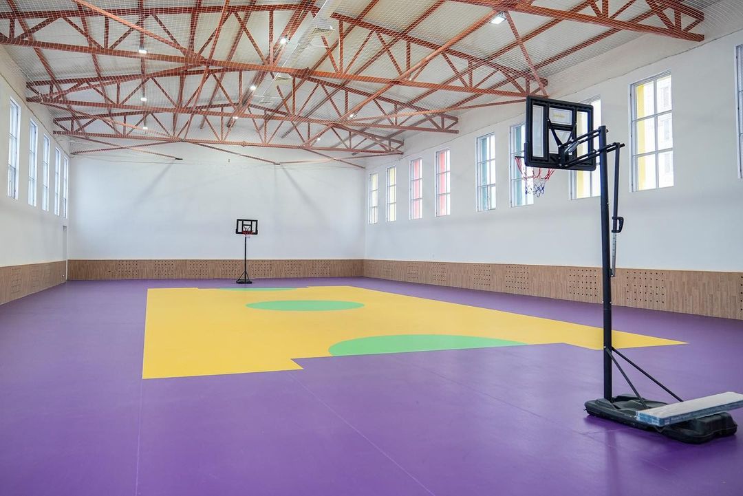 В ней есть 2 закрытых спортивных зала, 2 открытых поля, 140 кабинетов и актовый зал на 480 мест. Также школа оборудована медицинским кабинетом и столовой, рассчитанной на обслуживание 500 детей одновременно.