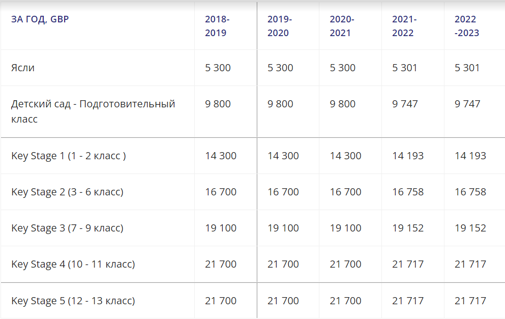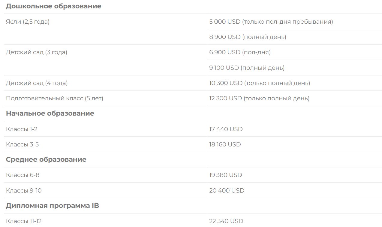 Стоимость обучения в некоммерческом акционерном обществе за 2022-2023 учебный год, начиная от яслей до 12-13 класса, мы увидели на сайте и привели ниже.