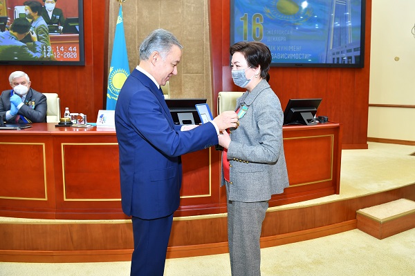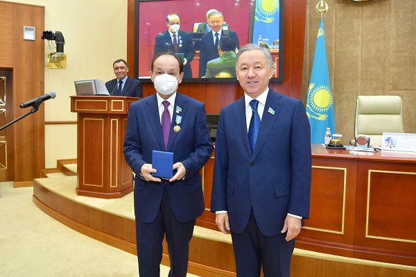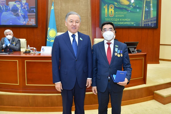 За заслуги в государственной и общественной деятельности, значительный вклад в социально-экономическое и культурное развитие страны, укрепление дружбы и сотрудничества между народами орденом «Барыс» III степени награждён депутат мажилиса Омархан Оксикбаев, орденом «Парасат» — Жексенбай Дуйсебаев и Дания Еспаева, орденом «Құрмет» — Жамбыл Ахметбеков. Медалью «Ерен еңбегі үшін» отмечены заслуги депутата мажилиса Александра Суслова, а также сотрудников аппарата Наримана Алгожина, Ботагоз Ботабаевой и Клары Маутенбаевой. Почётную грамоту Республики Казахстан получили сотрудники аппарата мажилиса Айтбек Алипов, Айгерим Нуржанова и Татьяна Сыздыкова.