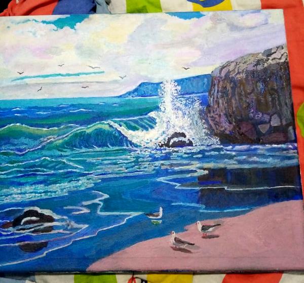 – По возможности ездим в горы, на природу. Картины Володя пишет на полу – так удобнее. Передвигается на четвереньках, кисточку зажимает 2 пальцами правой руки (левая рука не работает) и начинает творить. Тонкие мазки наносит, да так аккуратно – Володя во время трапезы меньший аккуратист, чем во время творчества. Это надо видеть! Одну картину пишет примерно полгода. Устанет – отодвинет работу на 3–4 дня, потом возвращается к полотну, до полуночи пишет, озарение на него снисходит, как у всех художников, – рассказывает Михайлов. – Владимир никогда не видел восходов и закатов на побережье, но взгляни, как он ярко и волнующе передает красоту моря в своих произведениях! А ведь его никто не учил художественному искусству, смешивать краски, подбирать цвета – это ему дано свыше. В детдоме была нянечка, которая показала Володе лист бумаги, расчертила его и объяснила, как что рисовать. Он сразу усвоил сказанное. Ему тогда было 12 лет.