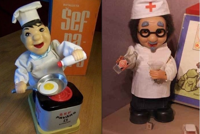 Выглядели они ярко, и девочки клянчили такое чудо у родителей постоянно. Ведь повар мог жарить яичницу, а доктор капал микстуру в стакан. Но уже на второй день девочек ждало сильное разочарование. Батарейки садились очень быстро, а купить новые тогда было проблемой, тем более в игрушках из Прибалтики часто использовались очень дефицитные батарейки «Крона». К тому же играть с доктором и поваром не особо получалось .Игрушки эти очень хрупкие. Механизм часто выходил из строя, если доктора просто держать в руках, а не ставить на стол. Да и функционал его сильно ограничен, так что чаще всего столь желанные подарки пылились в шкафу.