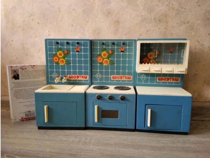 Кухня «Анютка» в этом плане не так практична, зато там был холодильник и духовка, в которых горели лампочки, из крана текла настоящая вода (сзади крепился бак), а конфорки на газплите загорались.