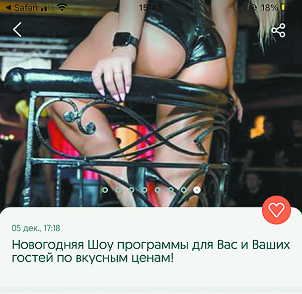 Мы обзвонили некоторые, и нам выслали целые кипы фотографий с шоу. В среднем цена услуги – в районе 10−15 тысяч тенге. Приватный танец от Деда Мороза стоит дороже – 20 тысяч тенге в час. Это профессиональные стриптизеры, которые “гарантируют разогрев публики за 5 минут”. Об этом нам гордо сообщили в одной компании. Есть и “фрилансеры”, работающие на себя, они дают объявления на популярных рекламных площадках, где предлагают организовать поздравление на Новый год с выездом на дом.