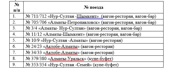 Перечень пассажирских поездов, курсирующих с объектами общественного питания на 7.09.2020 г.: