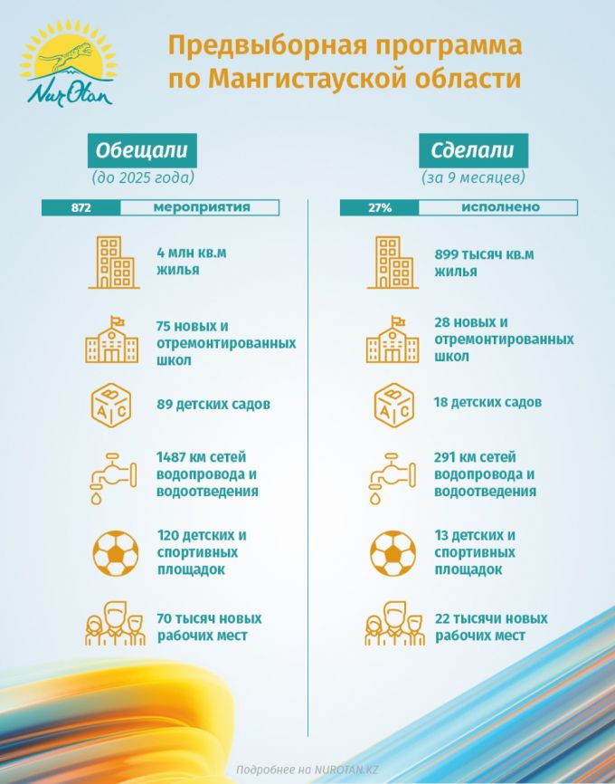 За девять месяцев в регионе исполнено 27% из 872 мероприятий, запланированных до 2025 года. Возведено 809 тыс. кв. м жилья, построено и отремонтировано 28 школ, создано 22 тыс. новых постоянных рабочих мест.