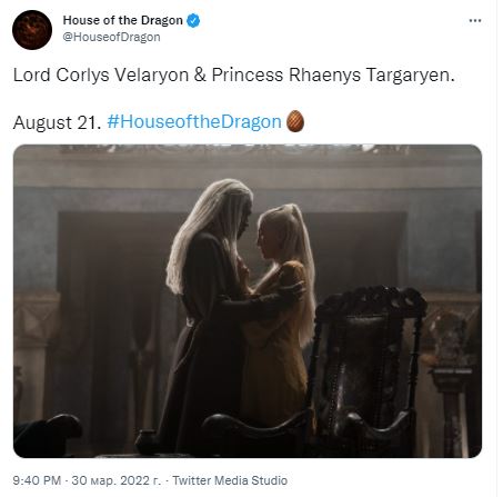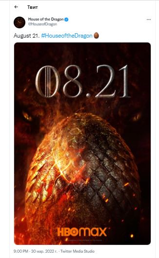 На официальной странице телевизионного сериала в Twitter говорится, что "Дом дракона" выйдет 21 августа в стриминговом сервисе HBO Max, передает Tengrinews.kz.