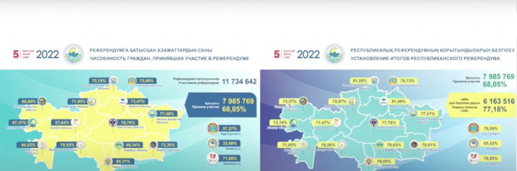 Напомним, 5 июня в Казахстане прошел республиканский референдум по поправкам в Конституцию. В бюллетене был всего один вопрос: "Принимаете ли Вы изменения и дополнения в Конституцию Республики Казахстан (Всего на референдум выносится 56 поправок. — Прим.), изложенные в проекте закона "О внесении изменений и дополнений в Конституцию Республики Казахстан".