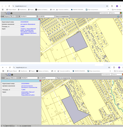 Чтобы не быть голословными, мы сверились с официальным порталом mapalmaty.kz — это городская геоинформационная карта, где каждому участку присвоено целевое назначение. Согласно геоданным, участок по адресу: Шугыла, 345 (именно такой указан на сайте ЖК «Alua»), отведён под объект образования. Там же находится и школа-гимназия. А вот соседний участок — Шугыла, 340/1 — действительно предназначен для многоэтажного жилого строительства.