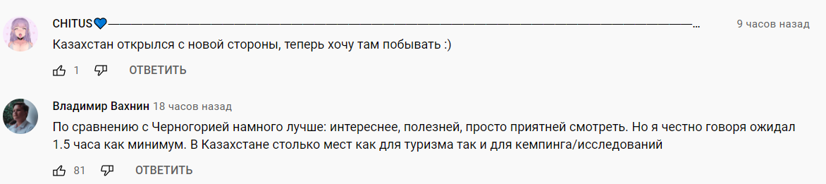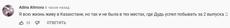 Отметим, что в выпусках Дудя уже неоднократно мелькали известные казахстанцы, такие как Нурлан Сабуров, Айсултан Сеитов, Скриптонит и прочие. Практически во всех этих выпусках Юрий высказывал свое уважение стране, но не показывал ее красоты и тем более не пробовал местные деликатесы.