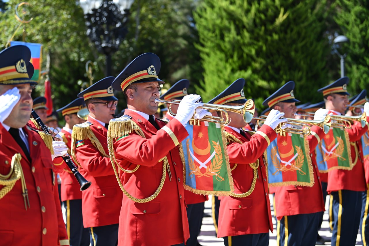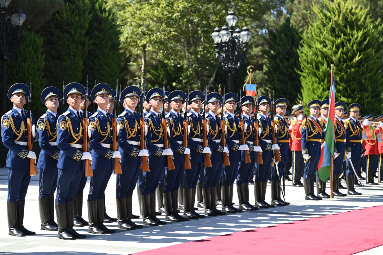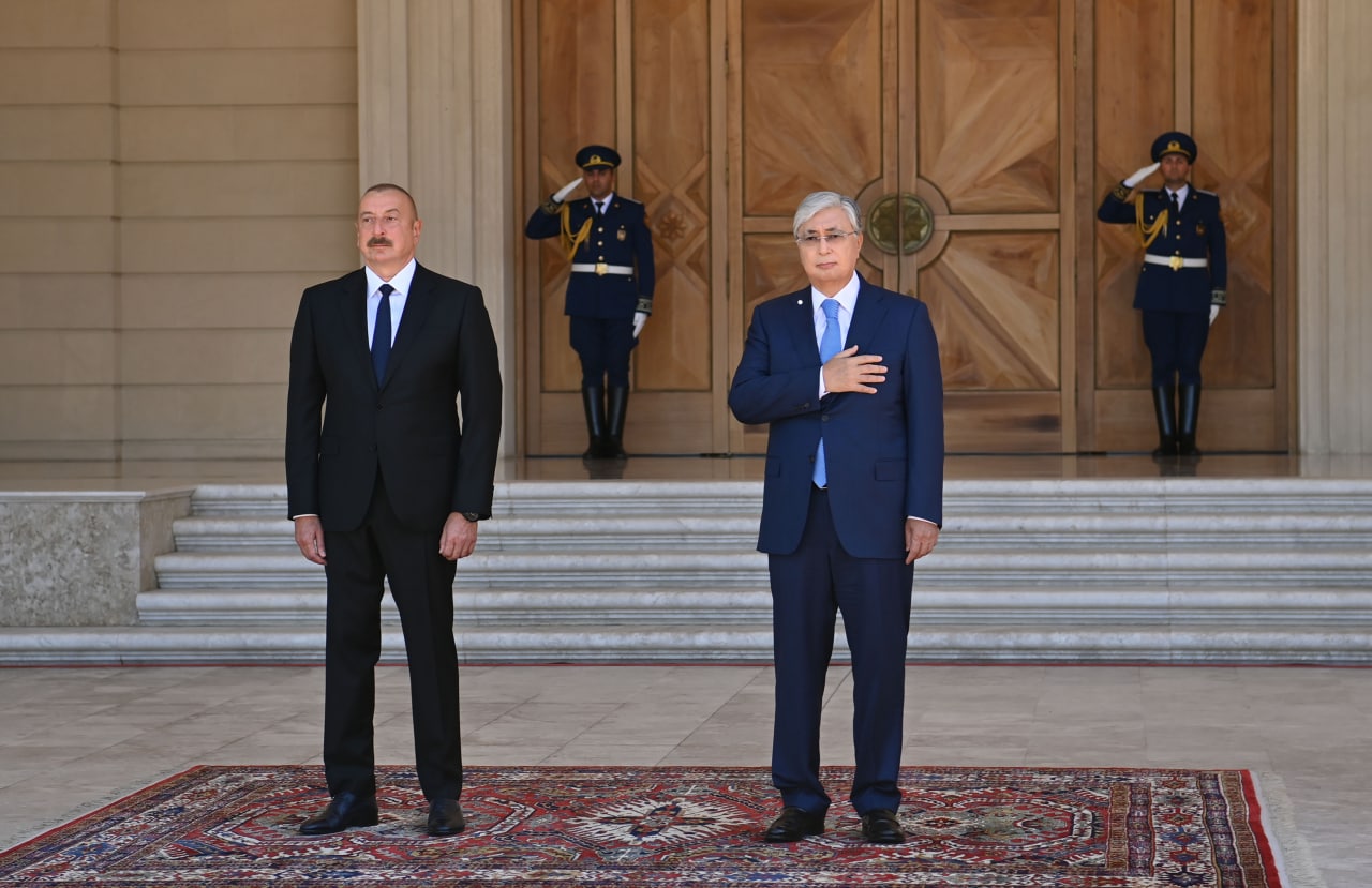Были исполнены государственные гимны Казахстана и Азербайджана. Затем Касым-Жомарт Токаев и Ильхам Алиев представили друг другу членов официальных делегаций.