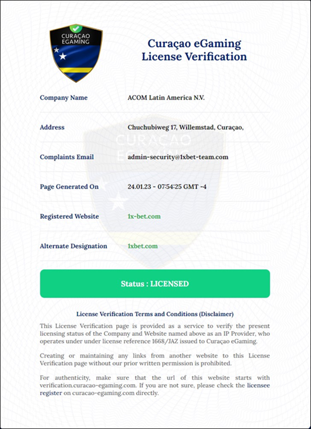 Лицензия 1xBet, выданная на Кюрасао