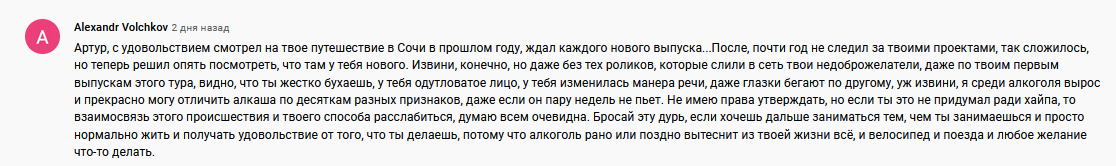 "Я на велосипеде гулял по Актобе вечером, какие-то пацаны толпой налетели просто и ограбили. На держателе у меня был мой телефон, iPhone, в сумке были все деньги. Я в отеле оставил все вещи и маленькую сумку с собой взял, и в ней были все деньги, которые я снял в России и поменял в Казахстане на тенге, чтобы путешествовать. Приличная сумма, ее мне хватило бы на месяц в Казахстане. У меня в кармане осталось 2 000 тенге", — добавил Странник Артур.