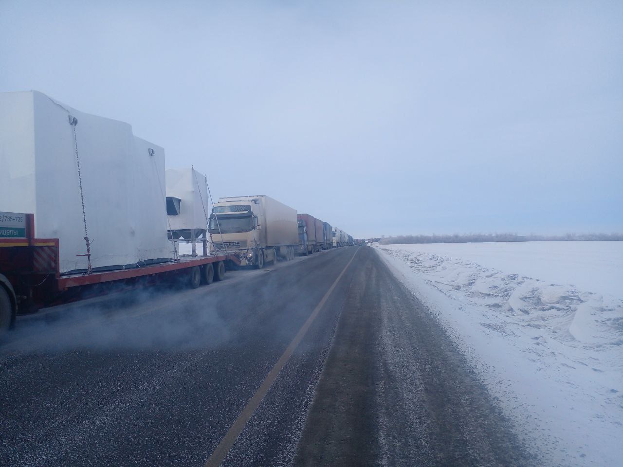 "Дальнобойщики пишут, что в районе погранпункта Троицкий (на Челябинск) скопилось большое количество фур. Много казахстанских из Костанайской области. Также ранее сообщалось о заторе около 600 фур в районе пункта Маштаково (ЗКО)", – написал автор.
